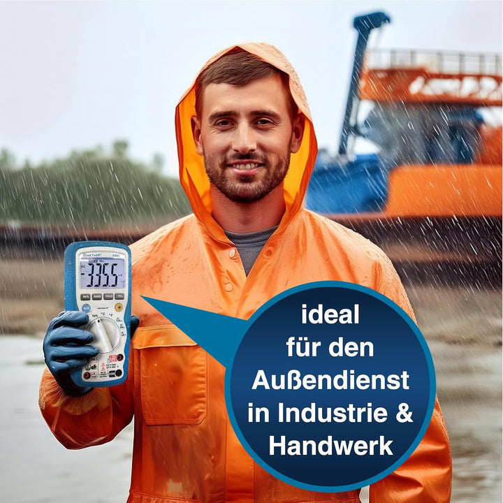 - XL LCD-DISPLAY: Das Gerät verfügt über eine 3 ¾-stellige LCD-Anzeige mit Beleuchtung, Polaritätsumschaltung & 4.000 Counts. Das besonders grosse Display garantiert ein gutes Erfassen der gemessenen Werte