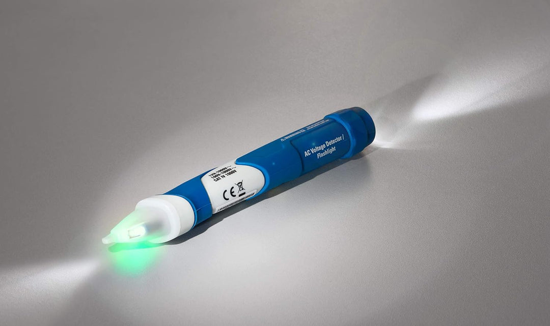 - Produkt 2: KONTAKTLOSE SPANNUNGSPRÜFUNG: Der P 1032 erlaubt die berührungslose Spannungsprüfung von 12 V bis 1000 V AC. Dazu das Gerät einfach an eine Steckdose, Lampenfassung oder ein isoliertes Kabel halten