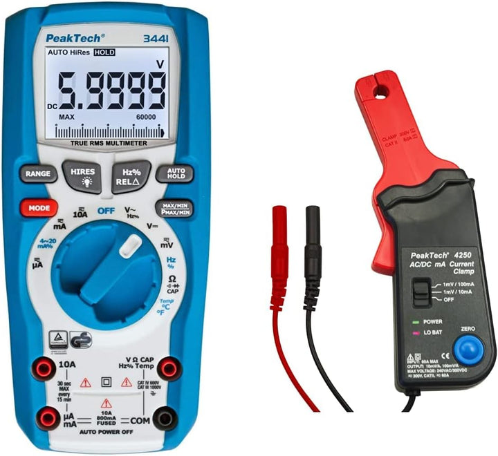 PeakTech 3441 – True RMS Digital Multimeter - CAT III 1000 V, Blau & P 4250 4250 - Stromzangen-Adapt