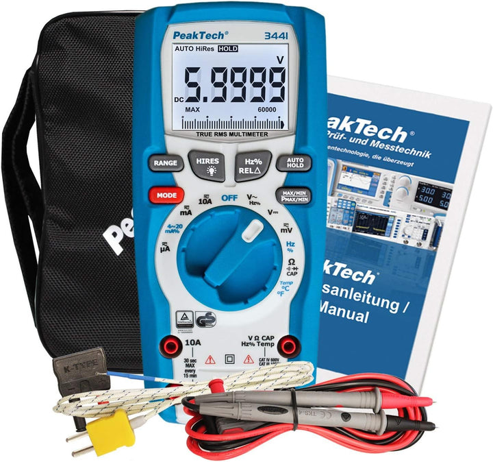 • Produkt 1: TRUE RMS MESSGERÄT: Das True RMS Digital-Multimeter P 3441 von PeakTech eignet sich durch eine Vielzahl an Messfunktionen hervorragend für den Berufsalltag von Elektronikern, Ingenieuren und Technikern