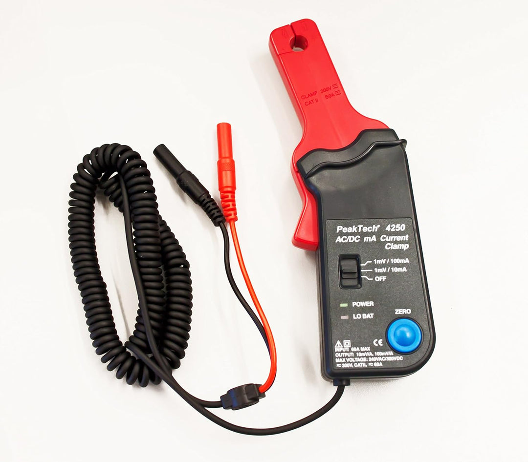 • Produkt 2: MESSWANDLER: Der professionelle Stromzangenadapter P 4250 von PeakTech kann niedrige Ströme bis 60 A AC/DC mit einer Frequenz bis zu 20 kHz messen. Sie eignet sich ideal in Verbindung eines Multimeters