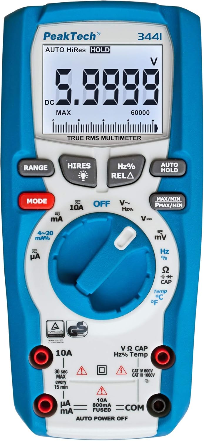- Produkt 1: TRUE RMS MESSGERÄT: Das True RMS Digital-Multimeter P 3441 von PeakTech eignet sich durch eine Vielzahl an Messfunktionen hervorragend für den Berufsalltag von Elektronikern, Ingenieuren und Technikern