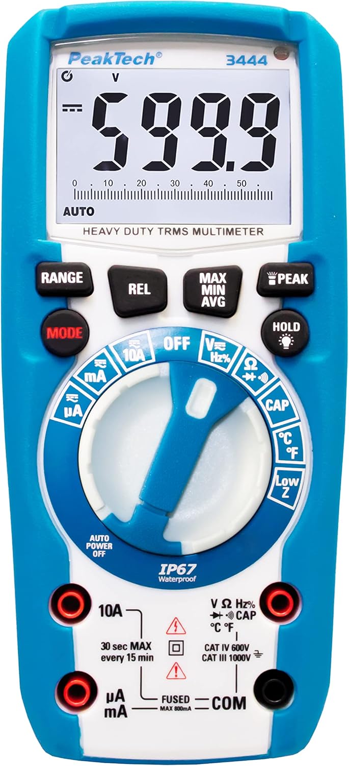 • Produkt 1: PROFI-GERÄT: Das Digital-Multimeter P 3444 von PeakTech mit extrem robustem Gehäuse eignet sich durch viele nützliche Messfunktionen perfekt für den Berufsalltag von Elektronikern, Technikern & Ingenieuren