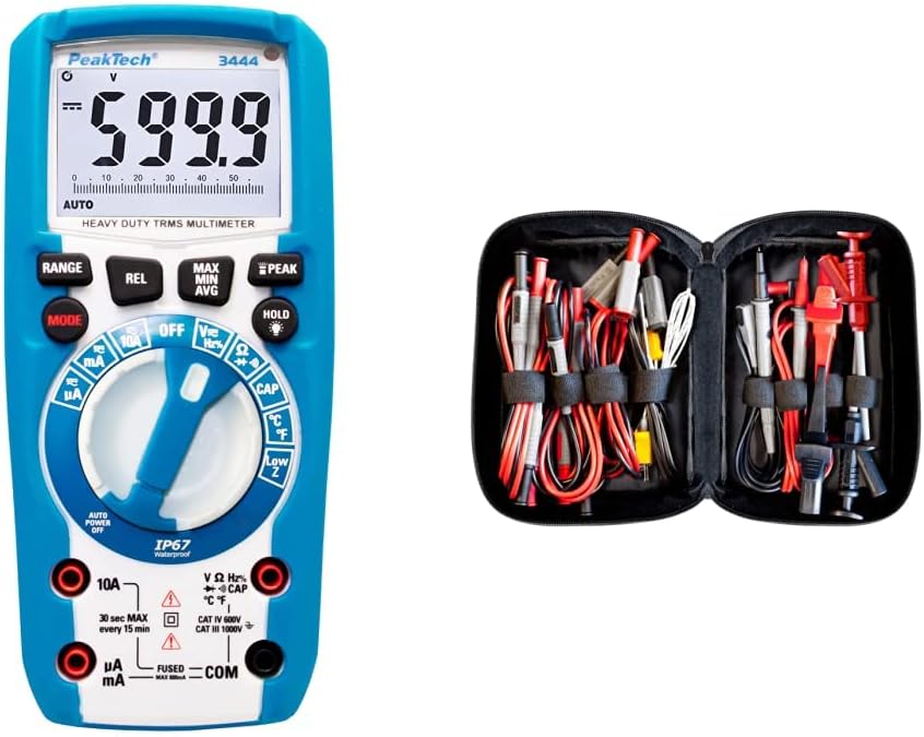 PeakTech 3444 – True RMS Digital Multimeter & Peak Tech P 8200 – Messzubehör Set für Digital Multime