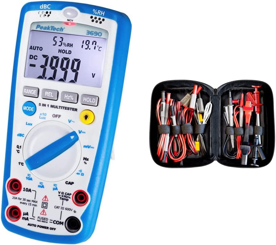 PeakTech 3690 – Digitales 5-in-1 Multimeter & Peak Tech P 8200 – Messzubehör Set für Digital Multime