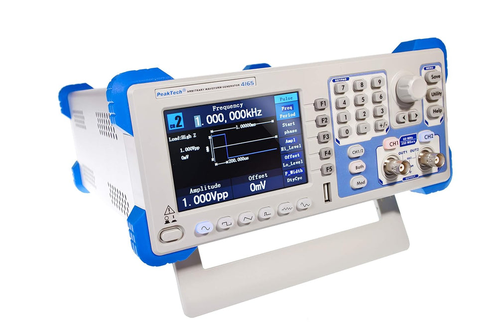 - WAVEFORM GENERATOR: Beim P 4165 von PeakTech vereinen sich ein Arbitrary-Wellenformgenerator sowie ein Funktionsgenerator in einem Multifunktionsgenerator. Für Ausbildung, Forschung und Entwicklung