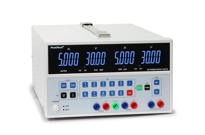 - Produkt 1: PROFI-GERÄT: Das P 6075 ist ein hochpräzises Labornetzteil mit stufenloser Spannungs- und Stromeinstellung. Ein Mikroprozessor steuert die Erzeugung, Anzeige, Kontrolle & Absicherung von Strom und Spannung