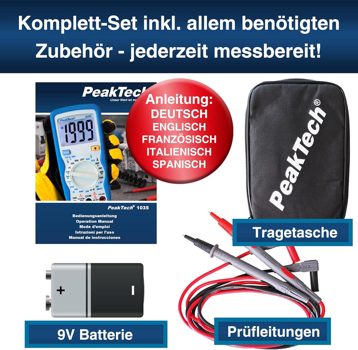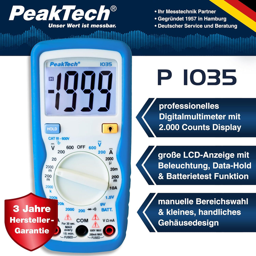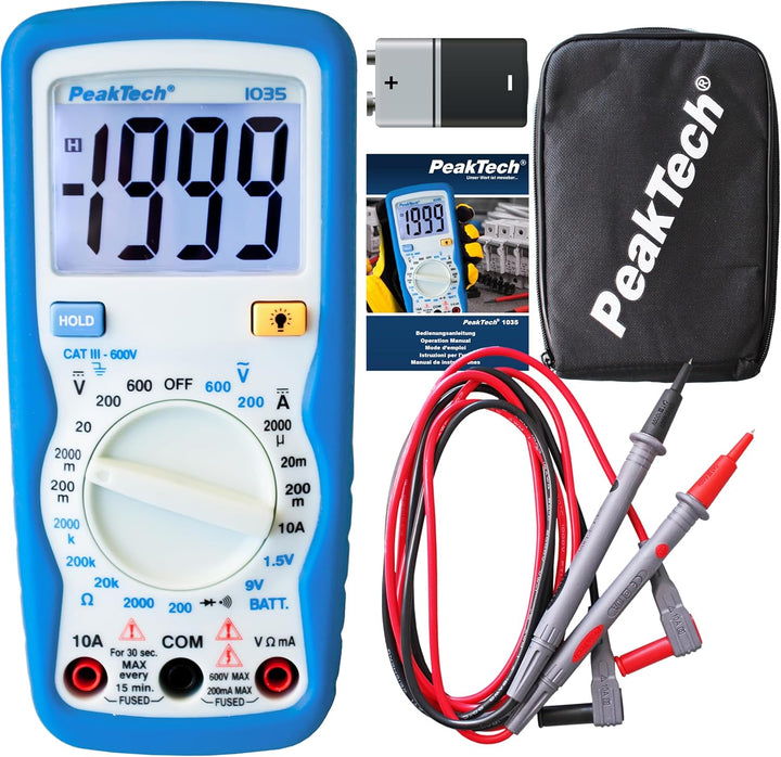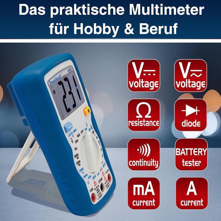 - IDEAL FÜR DEN AUSBILDUNGS- & SERVICEBEREICH: Das Digital Multimeter 1035 ist ein leistungsstarker Durchgangsprüfer. Er misst Werte von Gleich-/ Wechselspannungen, Gleichstrom, Widerstände & Dioden