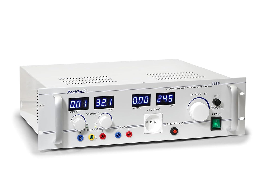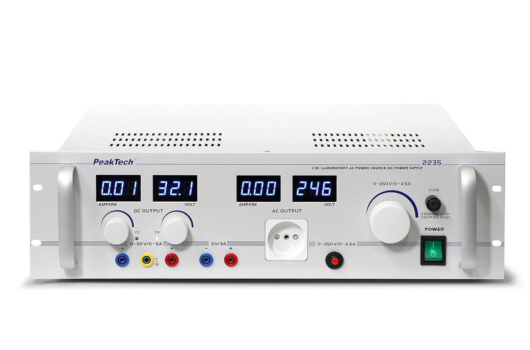 - 0-250V AC regelbar @ 4,5A und 0-30V/0-5A DC Doppelnetzteil