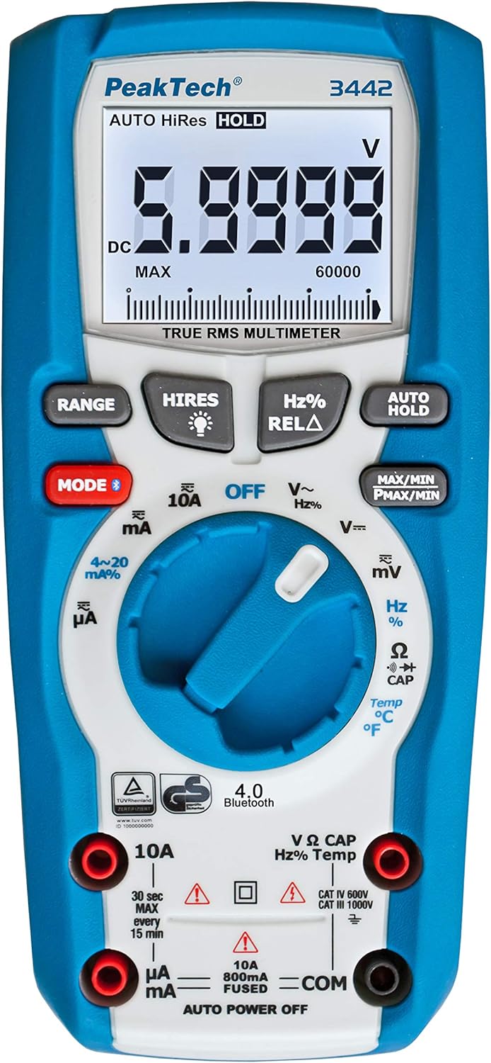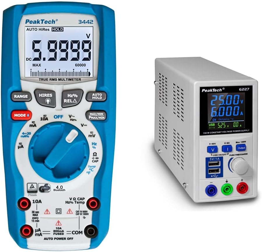- Produkt 1: PROFI-GERÄT: Das True RMS Digital-Multimeter P 3442 von PeakTech eignet sich durch die Vielzahl an nützlichen Messfunktionen hervorragend für den Berufsalltag von Elektronikern, Technikern & Ingenieuren