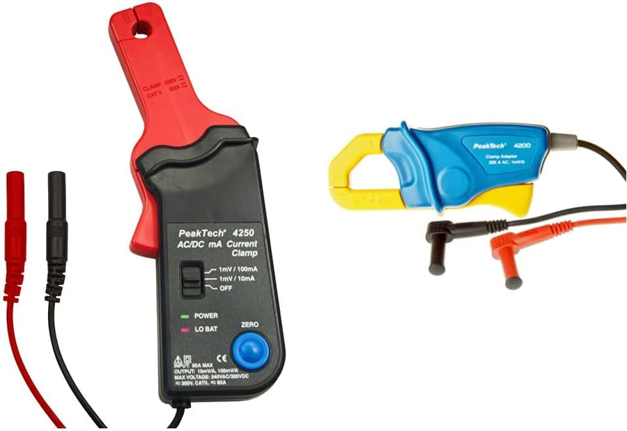 - Produkt 1: MESSWANDLER: Der professionelle Stromzangenadapter P 4250 von PeakTech kann niedrige Ströme bis 60 A AC/DC mit einer Frequenz bis zu 20 kHz messen. Sie eignet sich ideal in Verbindung eines Multimeters