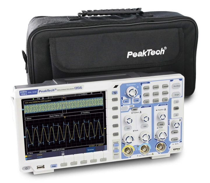 PeakTech 1356 – 2-Kanal "All-in-One" Speicher-Oszilloskop 60 MHz - Max. 1 GS/S und 12-Bit A/D - mit