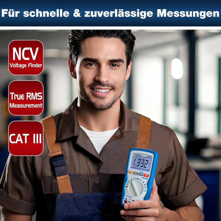 - MESSFUNKTION: Der handliche Spannungsmesser führt zuverlässig Widerstands-, Frequenz-, Kapazitäts- und Temperaturmessungen, sowie Diodentests, Durchgangsprüfungen & AC/DC-Prüfungen (10 Ampere) durch