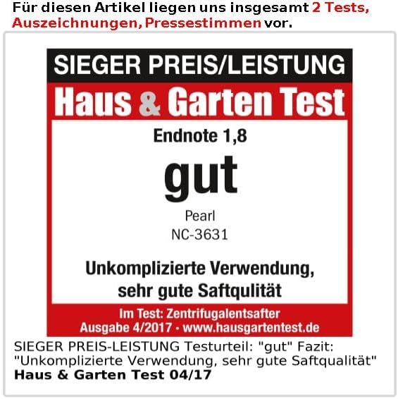 - Für viele Obst- und Gemüsesorten, z.B. Äpfel, Birnen, Kirschen, Tomaten, Zitrusfrüchte u.v.m. • Automatische Schaumtrennung • Leichte Reinigung • Stromversorgung: 230 V, Kabellänge 143 cm (Eurostecker) • Masse: 20 x 30 x 22 cm, Gewicht: 1,6 kg