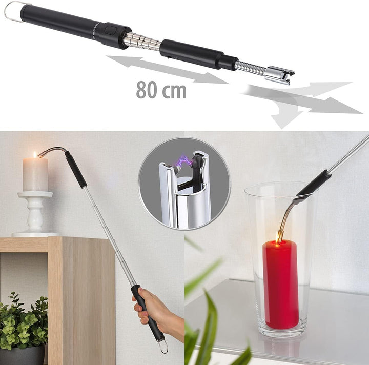 - Wind- und wetterfester Lichtbogen: ohne ausblasbare Flamme • Sicherheits-Schalter: kein versehentliches Zünden • Farbe: schwarz/silber
