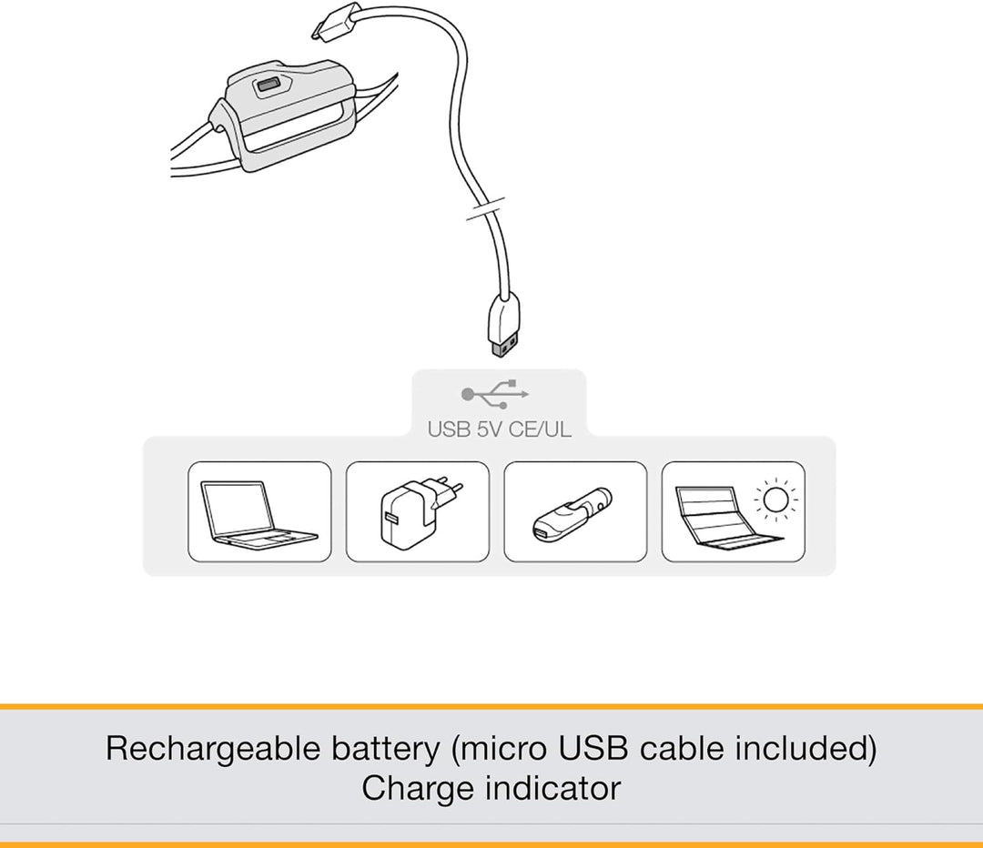 - Lithium-Ionen-Akku 680 mAh, aufladbar über Micro-USB-Anschluss, mit Ladeanzeige. Fünfstufige Anzeige des Ladezustands für eine präzise Kontrolle der verbleibenden Akkulaufzeit.