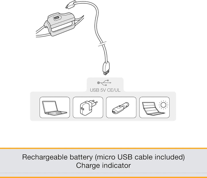 - Ultrakompakte, aufladbare Stirnlampe für das tägliche Training. Leuchtstärke von 200 Lumen bei einem Gewicht von nur Gewicht 35 g.