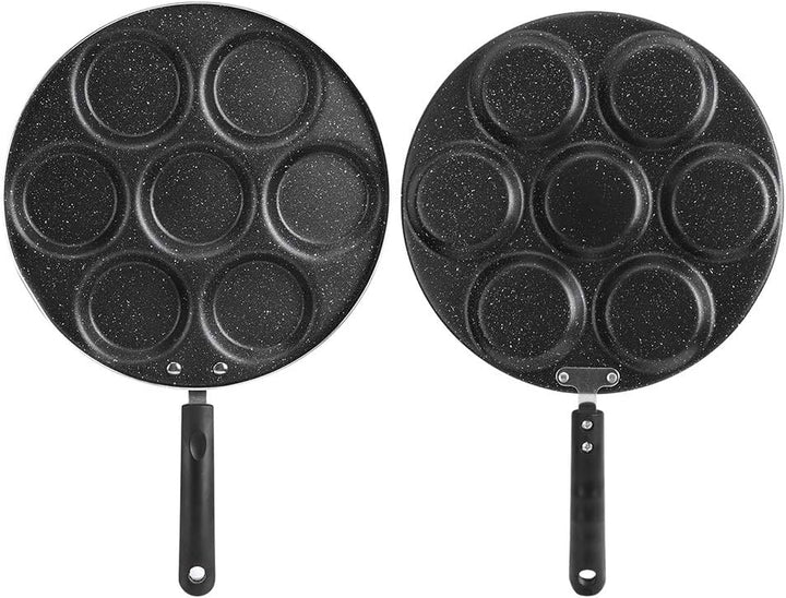 - đłă7 Grids Totală Bratpfanne mit 7 runden Löchern, mit der Sie problemlos 7 Pfannkuchen oder 7 Arten von Speisen gleichzeitig zubereiten können, was Ihre FrĂŒhstĂŒckszeit erheblich verkĂŒrzen und Ihr Leben bequemer machen kann.