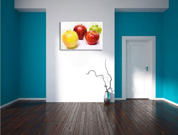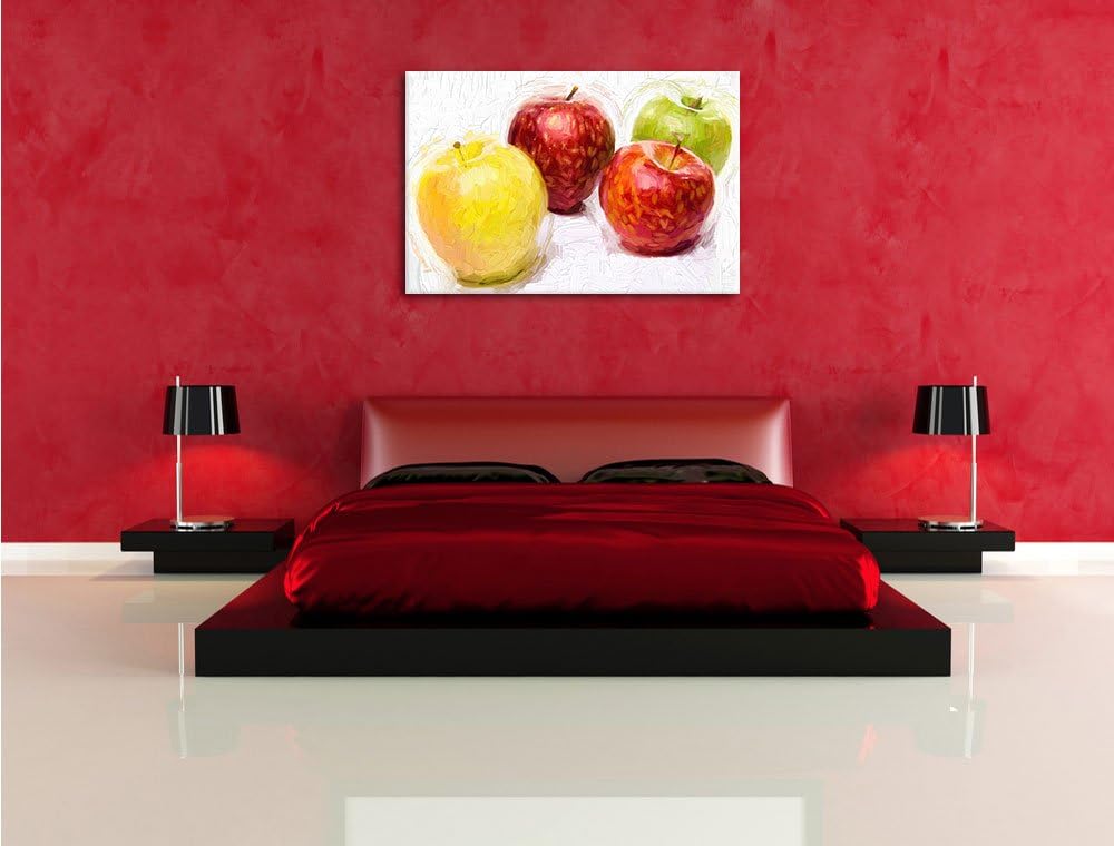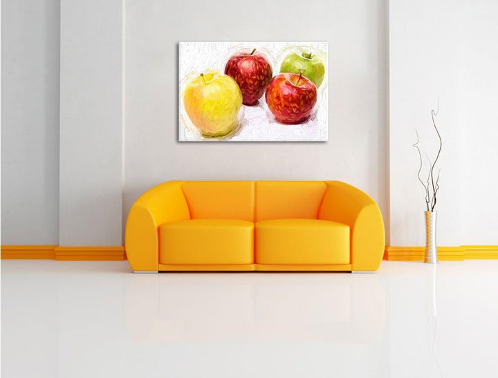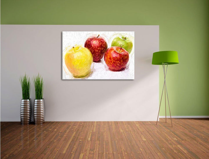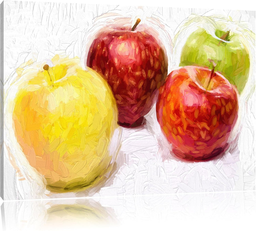 Äpfel Pinsel Effekt, Format: 100x70 auf Leinwand, XXL riesige Bilder fertig gerahmt mit Keilrahmen,