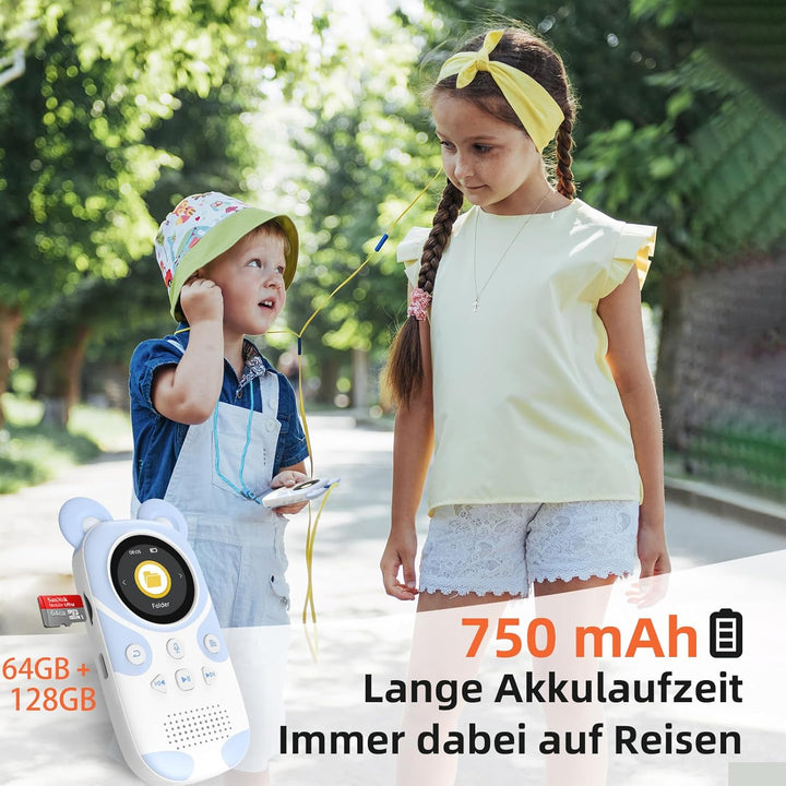 - 【Ein vielseitiger Musikplayer für Kinder】Neben der Wiedergabe von Musik und Hörbüchern unterstützt er auch Funktionen wie FM-Radio, Aufnahme und Wecker. Ausserdem verfügt er über Funktionen, mit denen Sie die Helligkeit des Bildschirms