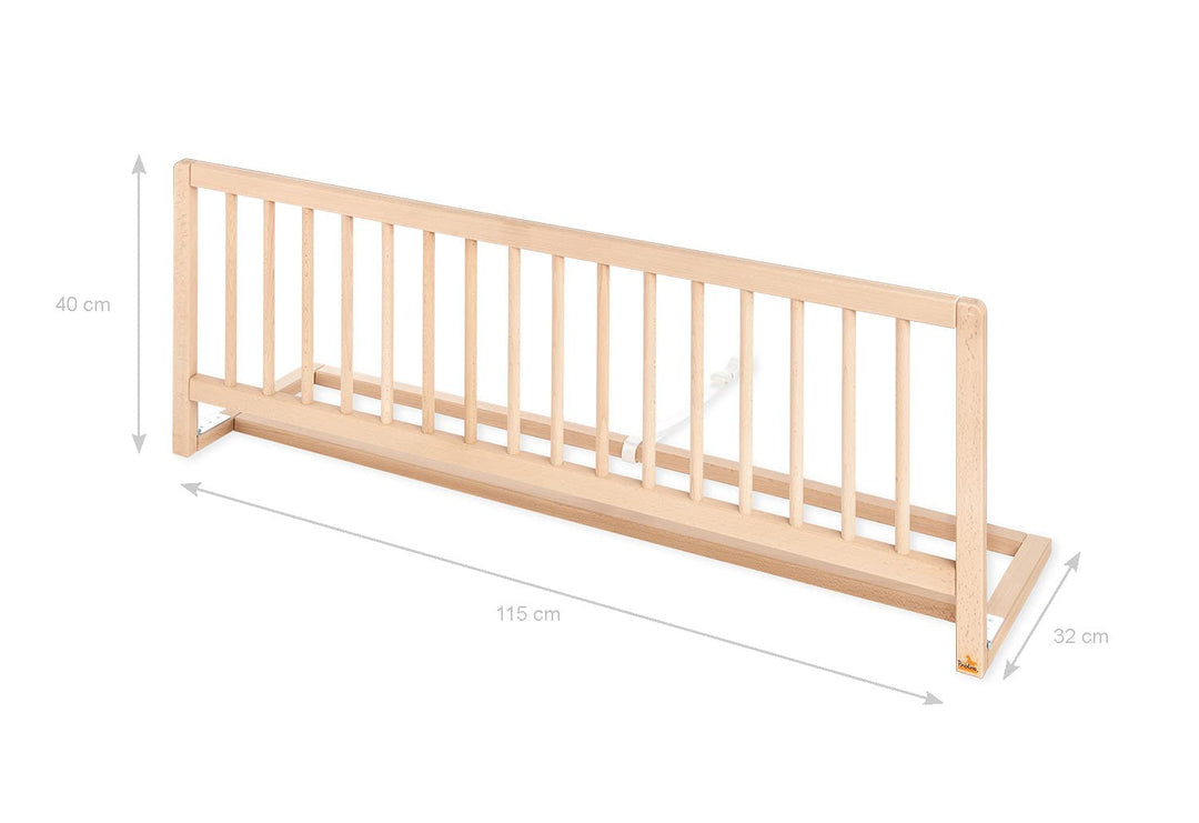 • Hochwertige Pinolino Qualität; Material: Buche, klar lackiert; Masse: L 115 cm, B 32 cm, H 40 cm, klappbar; Lieferumfang: ein Bettschutzgitter, keine Montage erforderlich; passend für alle Matratzen mit einer Höhe bis 19 cm