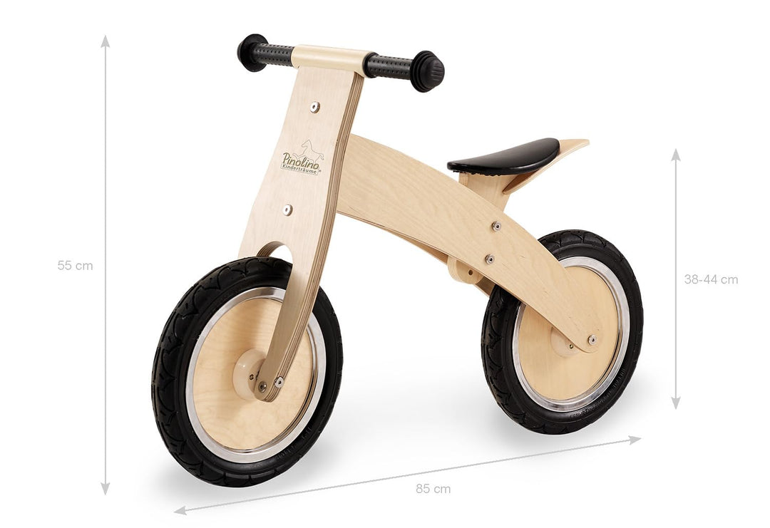 - Das klar lackierte Holzfahrrad aus massiver Birke mit Reflektor trainiert ganz ohne Stützräder Gleichgewicht, Reaktion und Koordination. Optional ist von Pinolino ein Stellplatz für Laufräder erhältlich