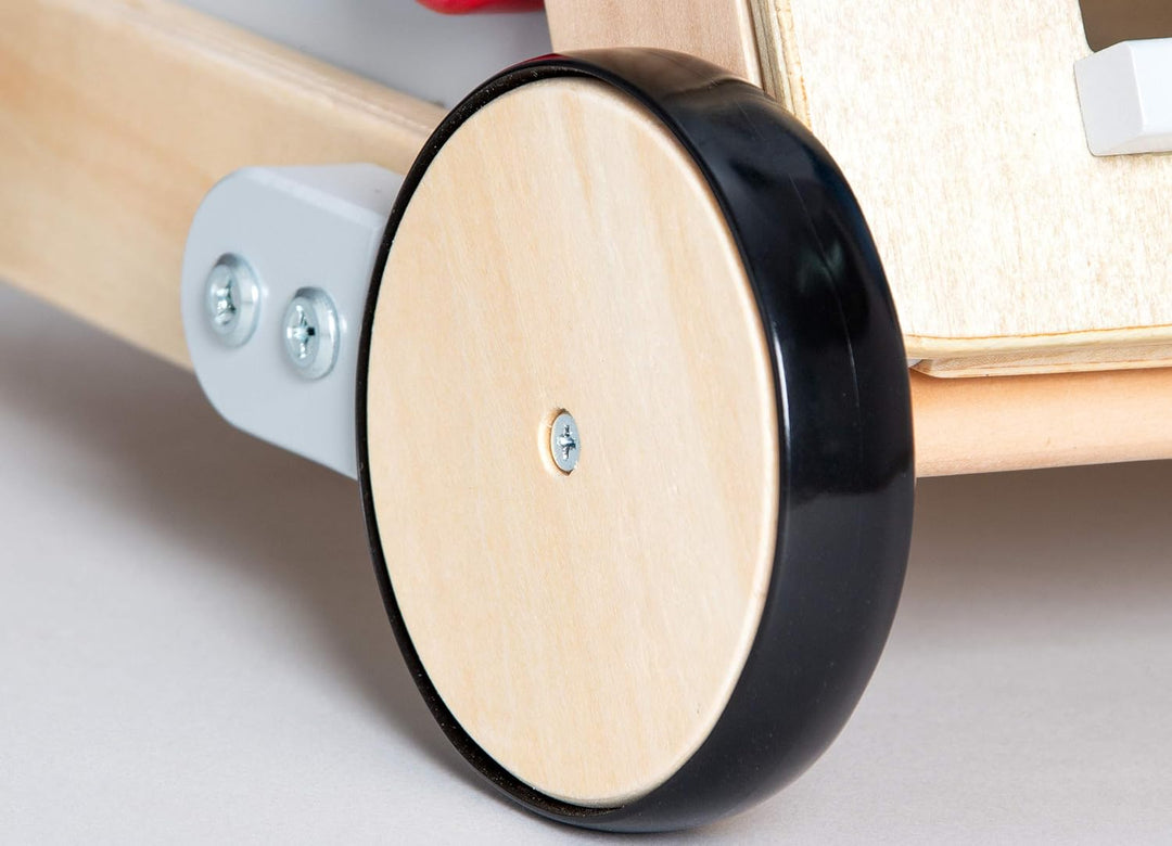 • Das Bremssystem hilft die ersten noch unsicheren Gehversuche gut zu meistern. Die Bremswirkung lässt sich durch die Bremsklötze aus Holz ganz einfach stufenlos und mit wenigen Handgriffen einstellen