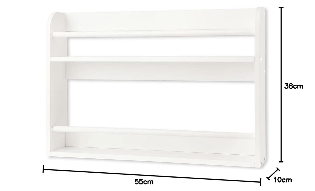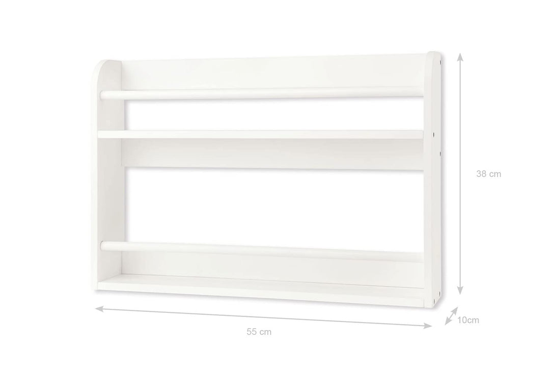 • Wand-Kinderbücherregal 'Jori' mit 2 Ablageflächen, Masse B 55 x T 10 x H 38 cm, aus weiss lackiertem MDF, inklusive Wandbefestigung, Belastbarkeit 15 kg, Montage erforderlich, FSC-zertifiziert (FSC-C120795)