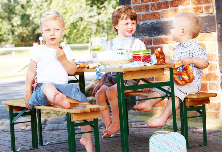 - Ein Klassiker in Kindergrösse: die Festzeltgarnitur lässt sich kinderleicht zusammenklappen und platzsparend verstauen. Eine leckere, spontane Brotzeit im Garten? 'Sepp' lässt sich schnell und einfach aufbauen, sodass der Tisch sofort gedeckt werden