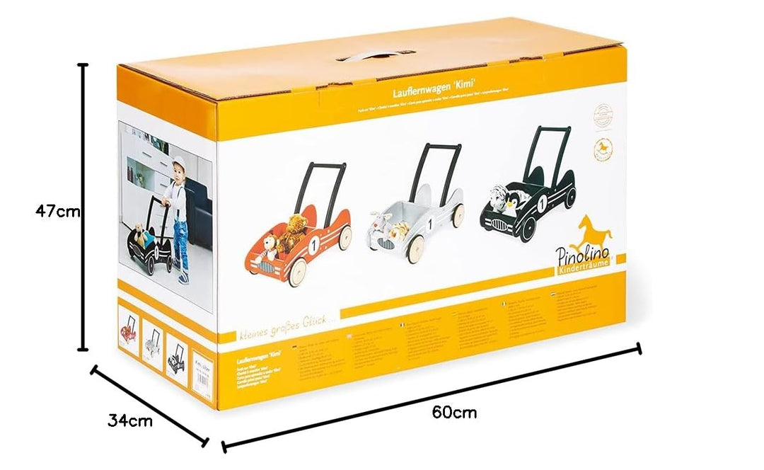 - Die besonders stabile Lauflernhilfe mit origineller Rennauto-Bedruckung bietet deinem Kind einen sicheren Stand. So kann es problemlos Laufen lernen, ohne dass der Wagen umkippt. 'Kimi' ist eine tolle Geschenkidee zum Geburtstag oder zu Weihnachten