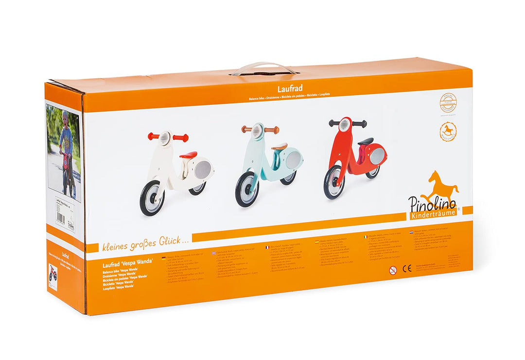- Durch den 3-fach höhenverstellbaren, gepolsterten Sattel wird das Holzlaufrad 'Vespa Wanda' zum treuen Weggefährten über viele Jahre. Einfach draufsetzen, abstossen und losrollen. Das Lauffahrrad wird für Kinder von 3 bis 5 Jahren empfohlen