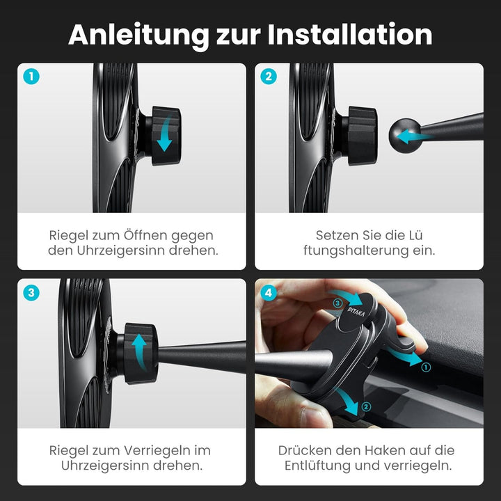 - Starke Magnetkraft: Eingebauter starker N52SH-Magnet. Es kann Ihr Handy fest befestigen und bietet stabile Aufladung auf allen Arten von Strassenoberflächen.