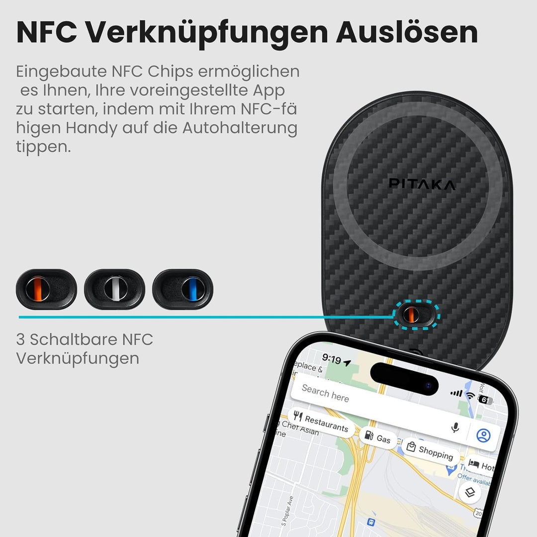 - Bequeme NFC Funktion: Berühren Sie einfach Ihr NFC-fähiges Handy an der Autohalterung, um über den integrierten NFC-Chip auf voreingestellte Apps zuzugreifen. Es stehen drei NFC Tastenkombinationen zur Auswahl, die Ihnen ein komfortables