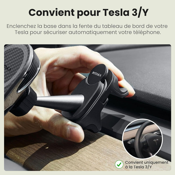 - Geeignet für Tesla 3/Y: Setzen Sie den Sockel in den Armaturenbrett Ihres Tesla ein, und er wird automatisch befestigt und bleibt während der Fahrt fixiert.