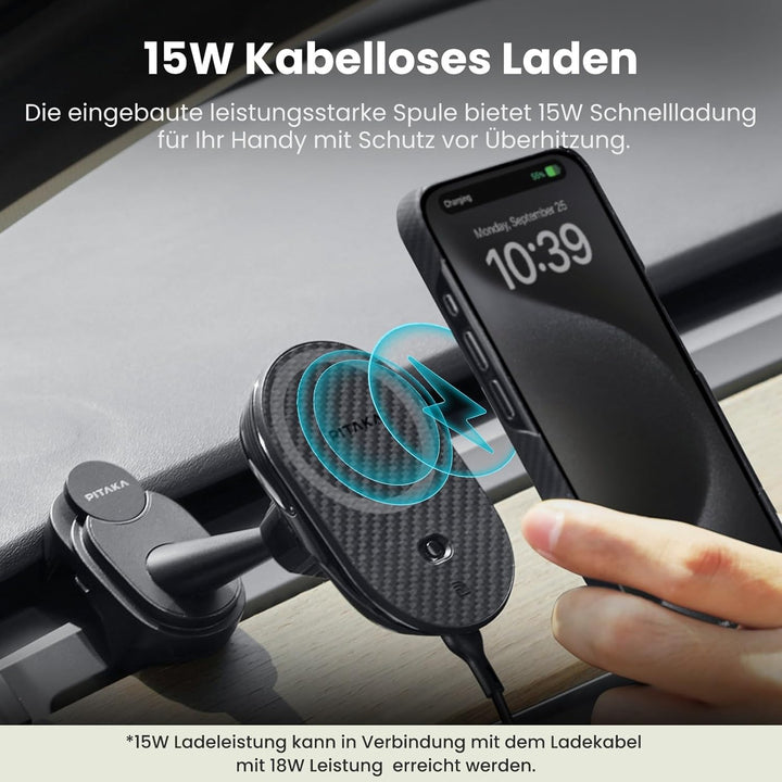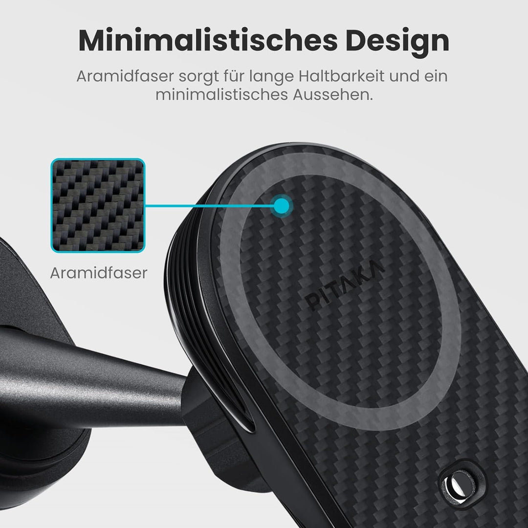 - Minimalistisches Design: Das stromlinienförmige Profil mit vakuumbeschichtetem PC und Aramidfaser Gewebe verleiht der Autohalterung ein elegantes und ansprechendes Aussehen.