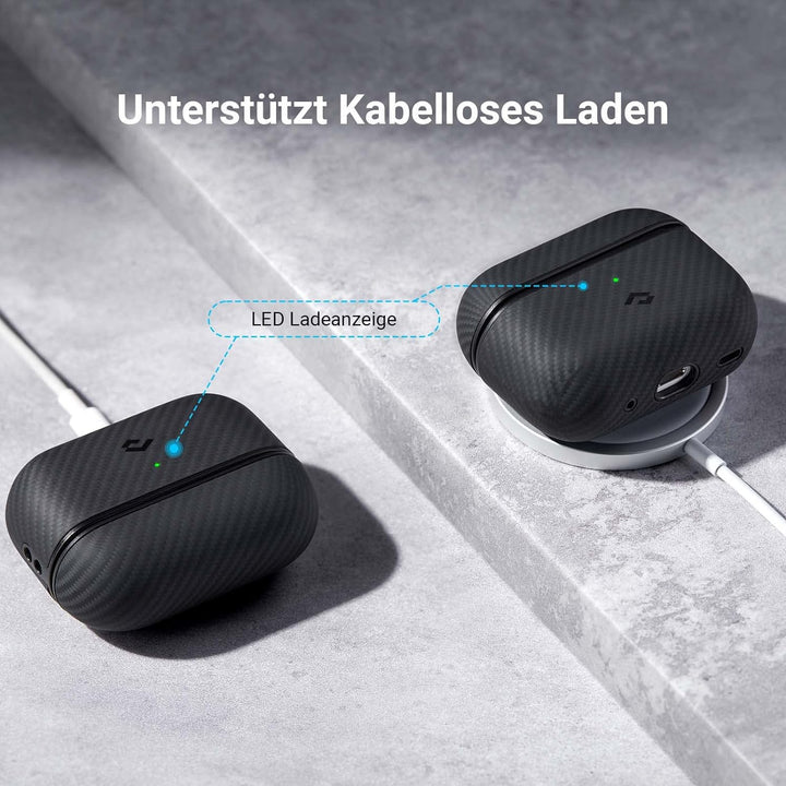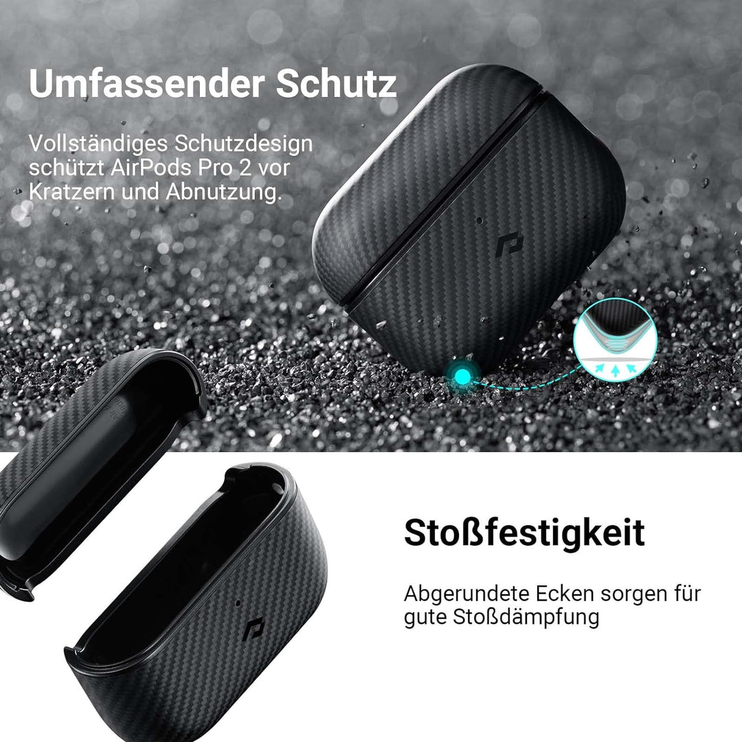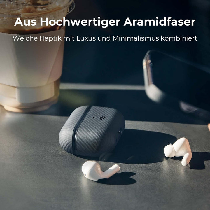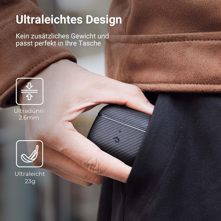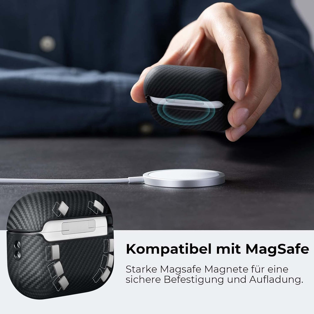 - Hochwertiger Aramidfaser: Die Hülle besteht aus 600D Aramidfaser, wodurch sie leichter und dünner ist und Ihre AirPods Pro vor täglicher Abnutzung schützt.