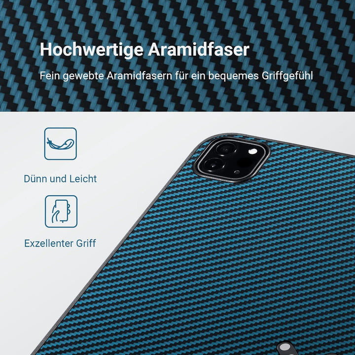 - Hochwertiges Material: Die iPad Pro Hülle besteht aus Aramidfasern. Es bietet ein leichtes Tragegefühl und einen strukturierten Griff und schützt Ihr iPad vor Kratzern und Stürzen.