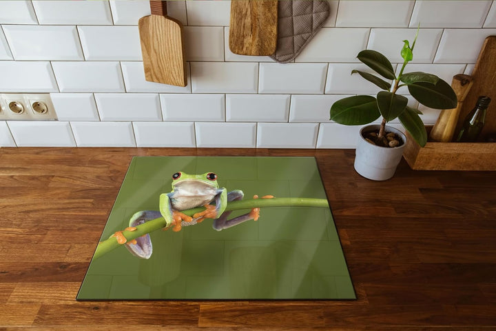 Baum-Frosch auf Bambus Herdabdeckplatte & Spritzschutz aus Echtglas | Für Herd-Kochfelder | 60x52 cm