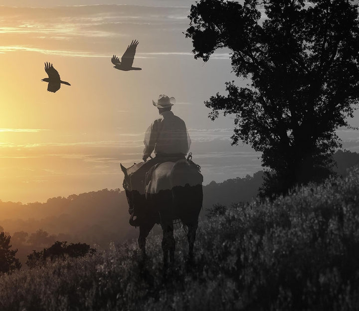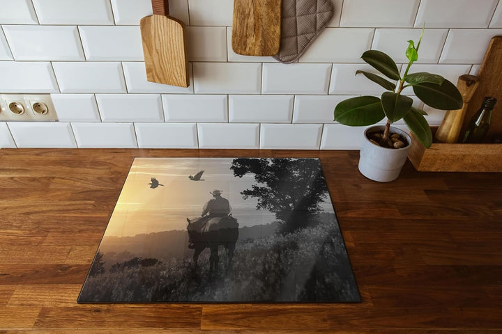 Ein Cowboy im Sonnenuntergang Herdabdeckplatte & Spritzschutz aus Echtglas | Für Herd-Kochfelder | 6