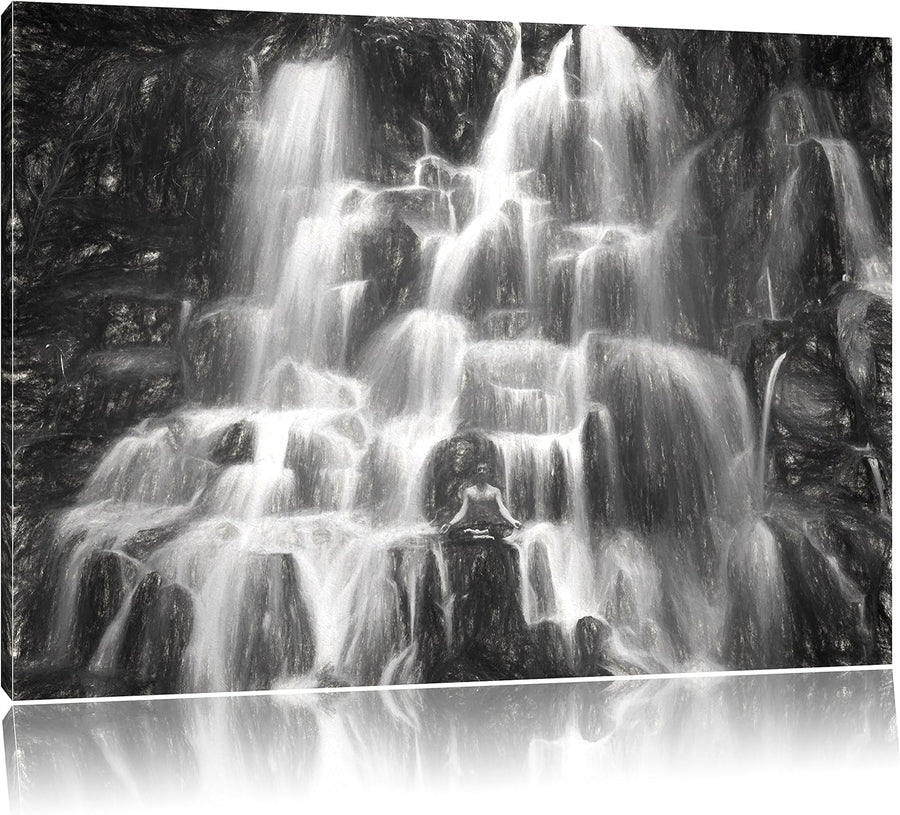 Pixxprint Yoga am Wasserfall in Bali als Leinwandbild/Grösse: 100x70 cm/Wandbild/Kunstdruck/fertig b