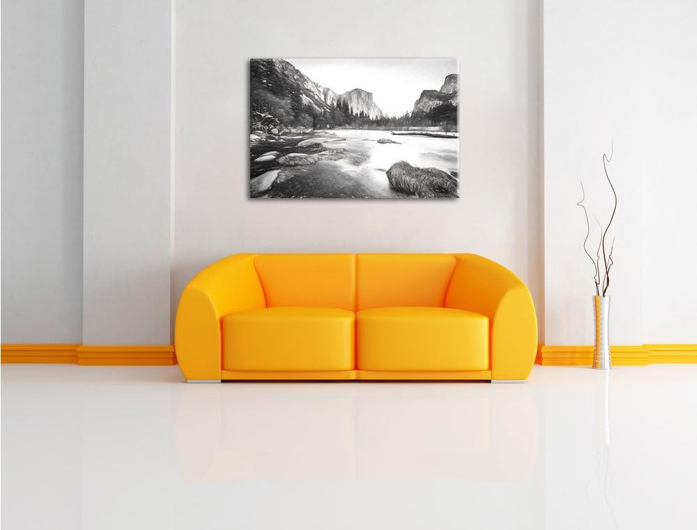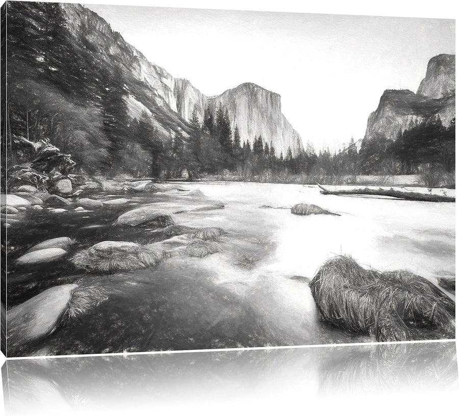 Pixxprint Yosemite National Park California Kunst Kohle Effekt, Format: 100x70 auf Leinwand, XXL rie