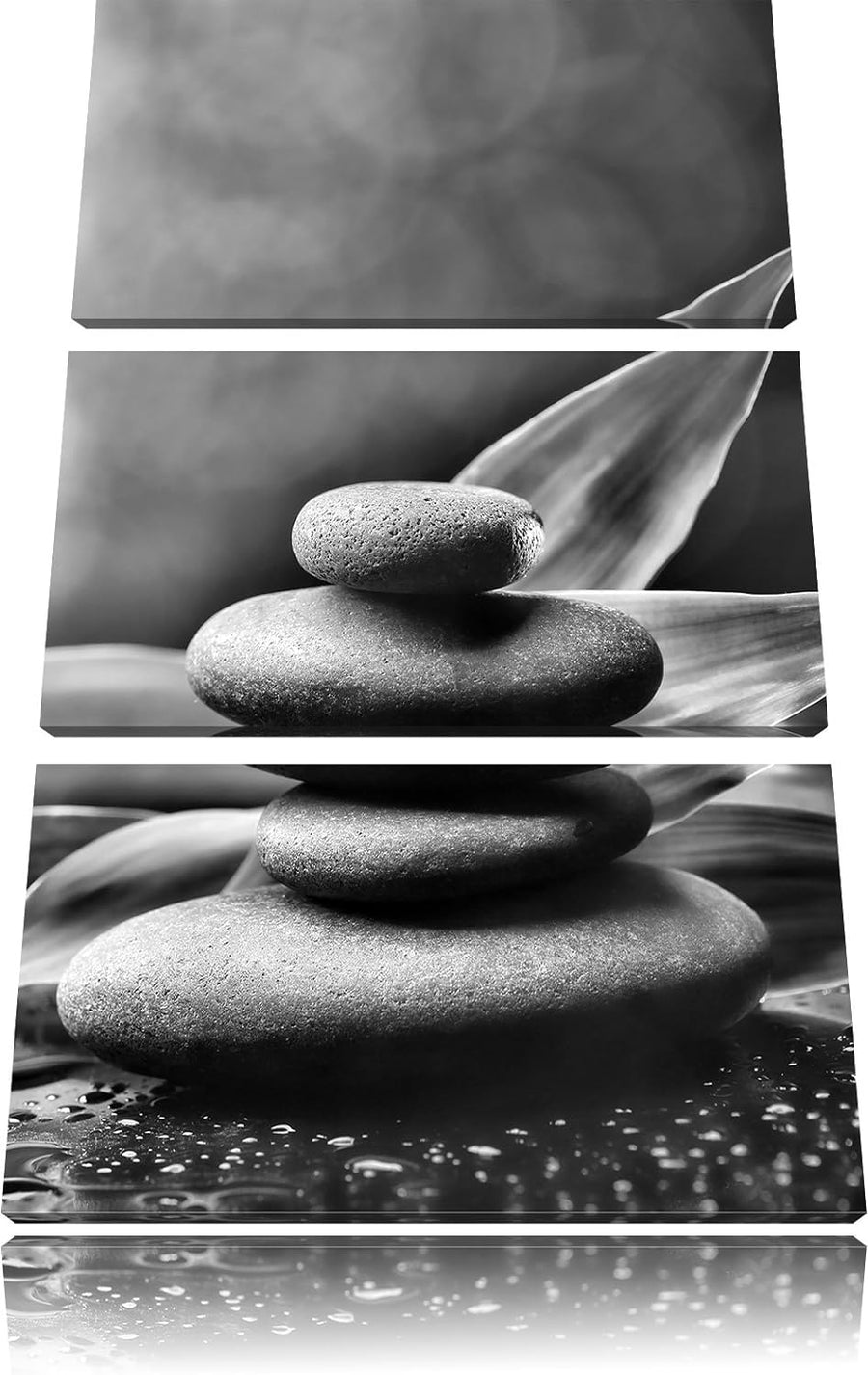Pixxprint Zen Steine mit Blättern als Leinwandbild/Grösse: 3 Teilig (120x80) cm/Wandbild/Kunstdruck/