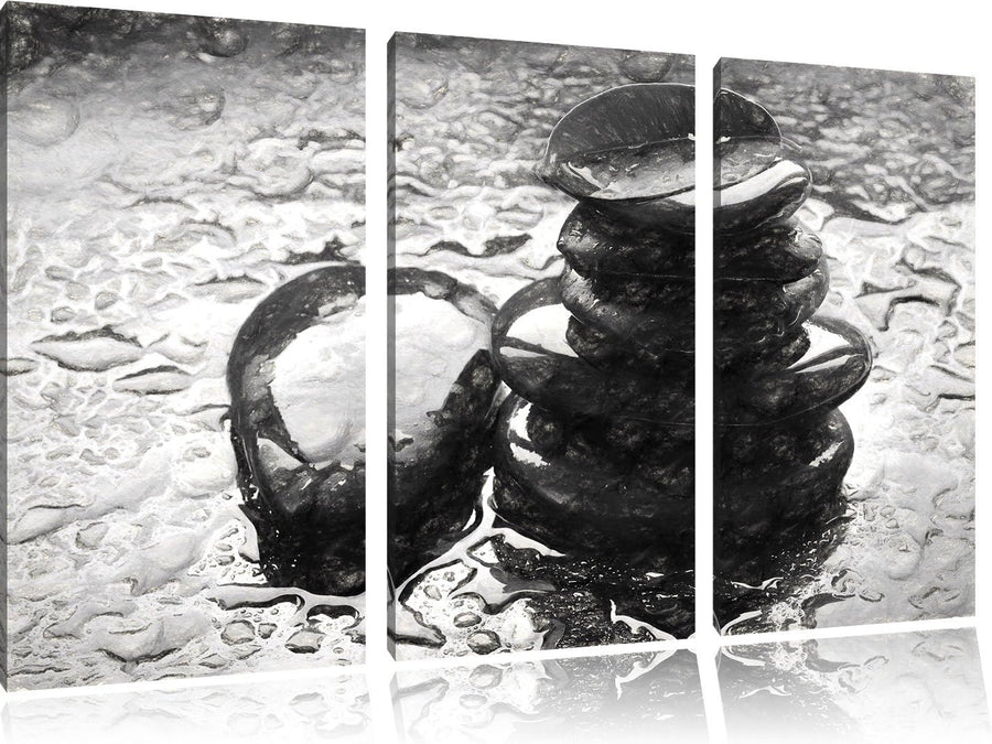 Pixxprint Zensteinturm im Regen als Leinwandbild/Grösse: 3 Teilig (120x80) cm/Wandbild/Kunstdruck/fe