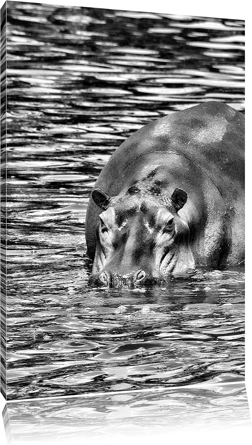 Pixxprint Zwei Flusspferde im Wasser als Leinwandbild/Grösse: 100x70 cm/Wandbild/Kunstdruck/fertig b