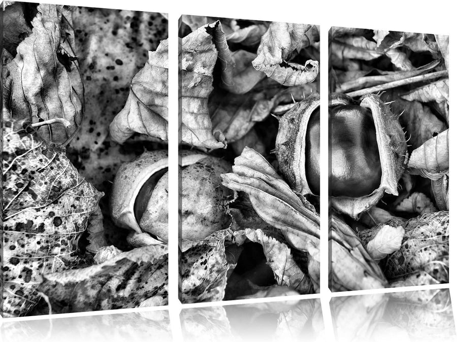 Pixxprint Zwei offene Kastanien als Leinwandbild/Grösse: 3 Teilig (120x80) cm/Wandbild/Kunstdruck/fe