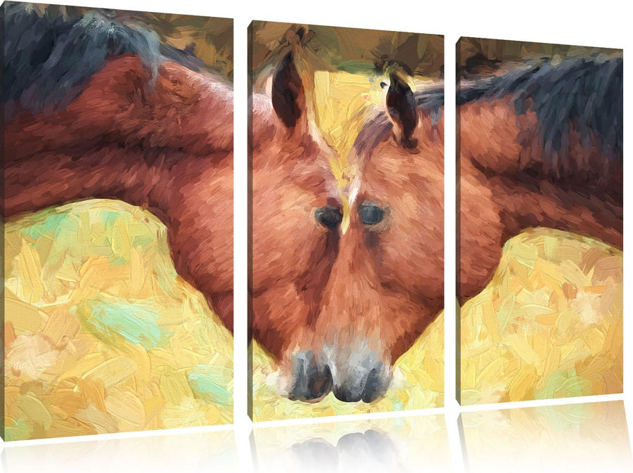 Pixxprint Zwei schmusende Pferde Kunst als Leinwandbild/Grösse: 3 Teilig (120x80 cm) cm/Wandbild/Kun