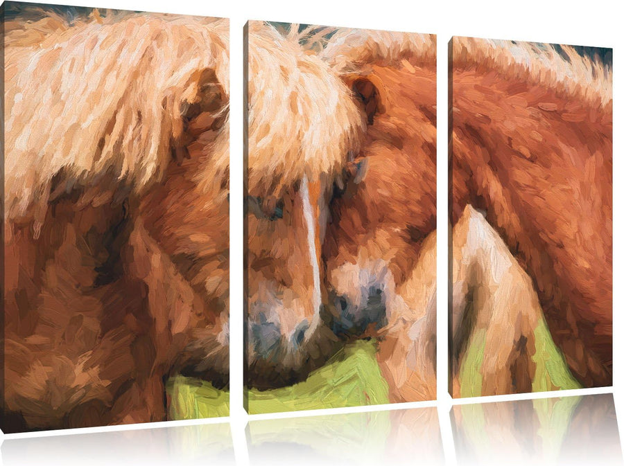 Pixxprint Zwei schmusende Pferde Kunst als Leinwandbild/Grösse: 3 Teilig (120x80) / Wandbild/Kunstdr