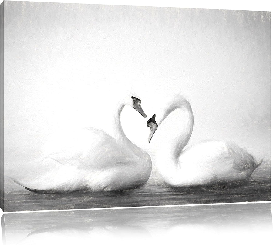 Pixxprint Zwei Schwäne auf dem Wasser Kunst / 100x70cm Leinwandbild bespannt auf Holzrahmen/Wandbild
