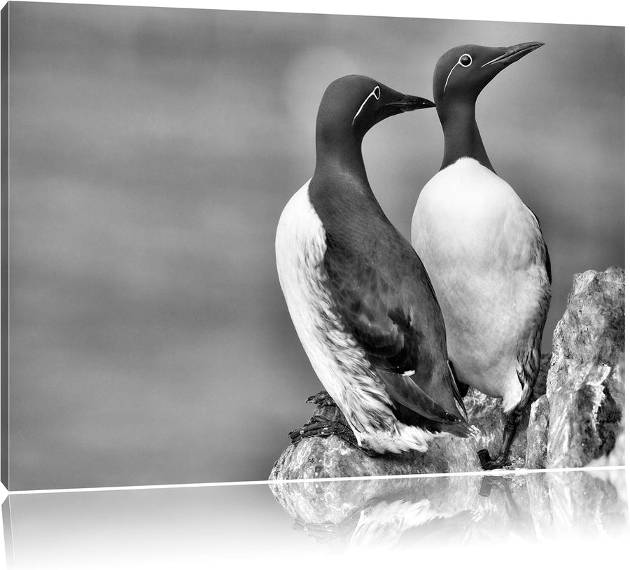 Pixxprint Zwei Trottellummen auf Felsen als Leinwandbild/Grösse: 100x70 cm/Wandbild/Kunstdruck/ferti