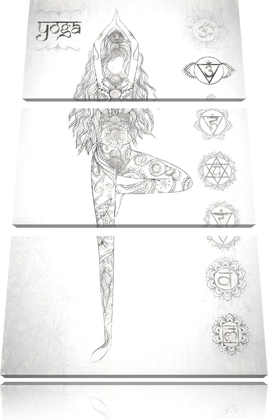 Pixxprint Yogafigur in der Tree Pose Kunst Kohle Effekt 3-Teiler Leinwandbild 120x80 Bild auf Leinwa